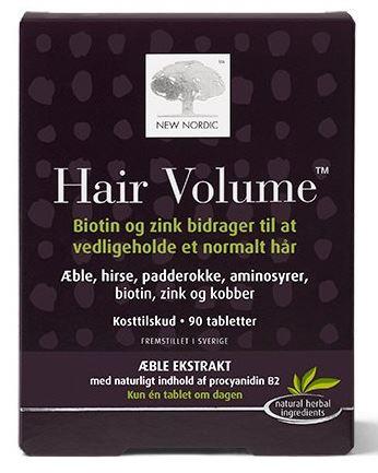 Hair Volume 90 Tabl er et effektivt kosttilskud fra New Nordic, som styrker dit hår og forbedrer dets volumen. Denne tablet indeholder en nøje sammensætning af æbleekstrakt, hirse, padderokke, aminosyrer samt essentielle næringsstoffer som biotin, zink og kobber.