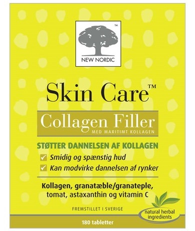 Skin Care Collagen Filler 180tab er en effektiv løsning til at bekæmpe tegn på hudens ældning. Vores beauty agent anbefaler dette produkt fra New Nordic, som findes hos Ren-velvaereshop.dk under kategorien Kosttilskud Virksomme Ingredienser Collagen.
