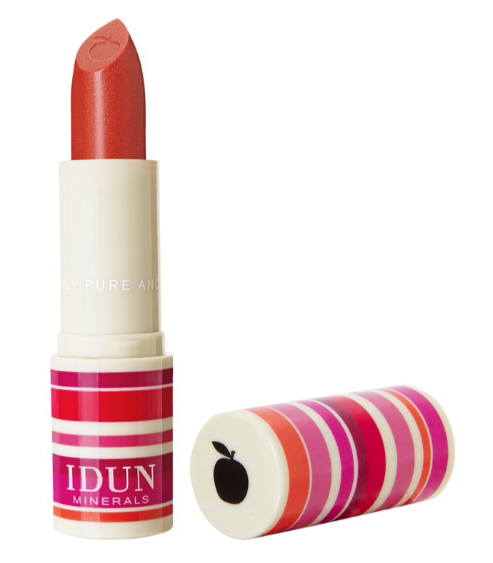 Idun Minerals Creme Lipstick Frida 3,6g er en lækker læbestift fra IDUN minerals, som du kan finde hos Ren-velvaereshop.dk under Makeup-kategorien. Denne creme læbestift fås i otte smukke nuancer og giver en elegant glans til dine læber.