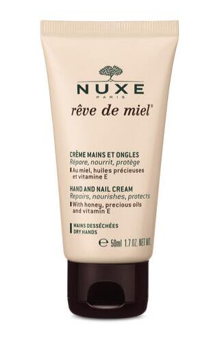 Nuxe Rêve de Miel Hånd- og Neglecreme 50ml er en uundgåelig tilføjelse til din skønhedsrutine. Denne håndcreme fra Nuxe er designet til at reparere og nære dine hænder og negle. Den indeholder: